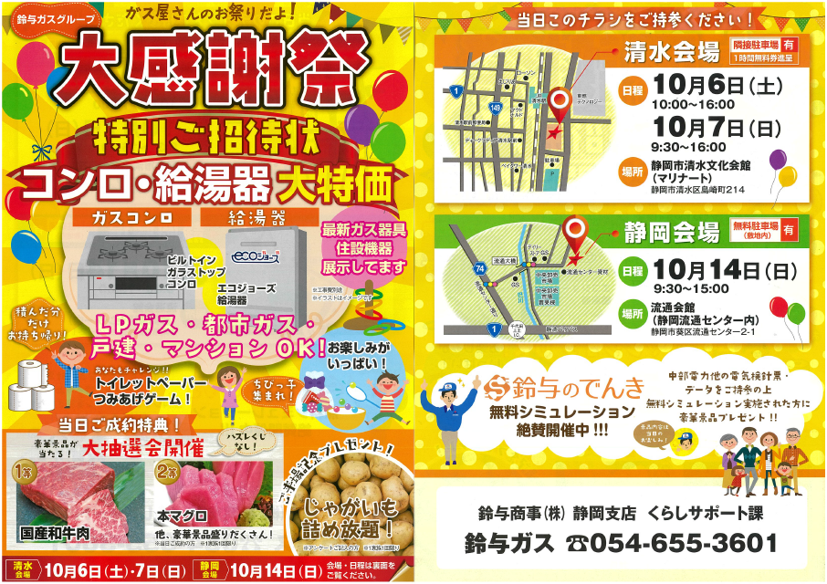鈴与ガスグループ・鈴与ホームパルでは、静岡市エリアにおきまして、下記の日程で大感謝祭を開催いたします。